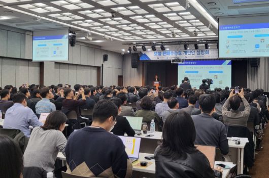 지난해 3월 금융당국이 보험업계 임직원, GA협회 등 업권 관계자들을 대상으로 개최한 보험 판매수수료 개편안 설명회. 사진=김명재 기자 |