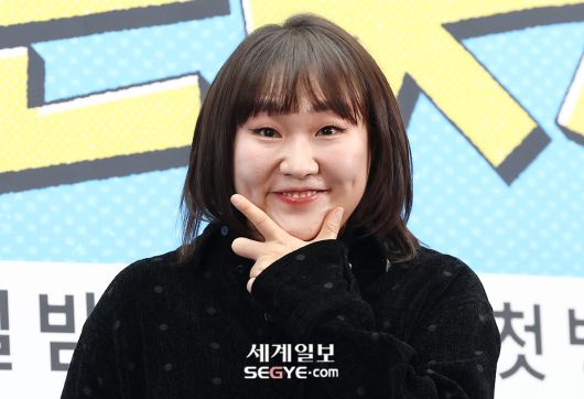 개그맨 이수지가 12일 서울 마포구 상암동 스탠포드 호텔에서 열린 JTBC ‘혼자는 못 해’의 제작발표회에 참석해 포즈를 취하고 있다.