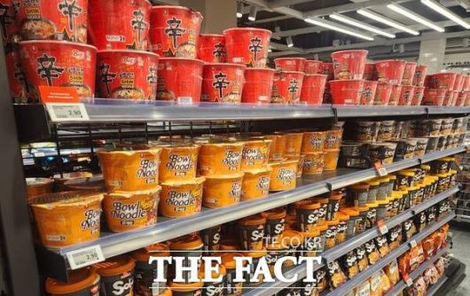 지난해 K-푸드 플러스(K-푸드+) 수출액이 전년 대비 5.1% 증가한 136억2000만달러를 기록하며 역대 최고 실적을 갈아치웠다. 사진은 스위스 체르마트의 한 마트에서 농심 신라면과 삼양식품 불닭볶음면이 진열돼 있는 모습. /손원태 기자 |