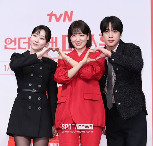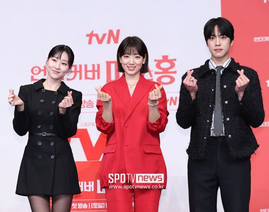 [스포티비뉴스=서울, 곽혜미 기자] tvN 새 토일드라마 '언더커버 미쓰홍' 제작발표회가 12일 오후 서울 구로구 신도림 더 링크 호텔에서 열렸다. 배우 하윤경, 박신혜, 조한결이 포즈를 취하고 있다.