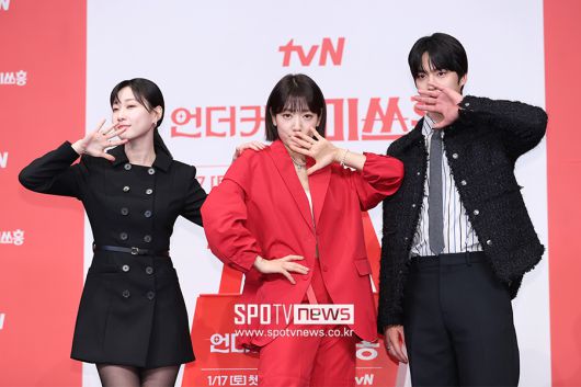[스포티비뉴스=서울, 곽혜미 기자] tvN 새 토일드라마 '언더커버 미쓰홍' 제작발표회가 12일 오후 서울 구로구 신도림 더 링크 호텔에서 열렸다. 배우 하윤경, 박신혜, 조한결이 포즈를 취하고 있다. <저작권자 ⓒ SPOTV NEWS. 무단전재 및 재배포 금지>