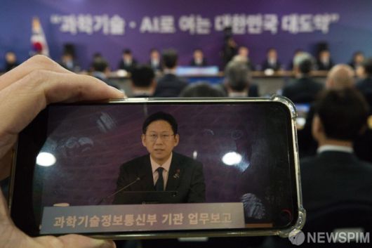 [서울=뉴스핌] 12일 오전 세종특별자치시 국가과학기술연구회에서 열린 '과학기술분야 출연연구기관 업무보고'에서 배경훈 부총리 겸 과학기술정보통신부 장관의 발언이 유튜브로 생중계 되고 있다.[사진=과학기술정보통신부] 2026.01.12 photo@newspim.com