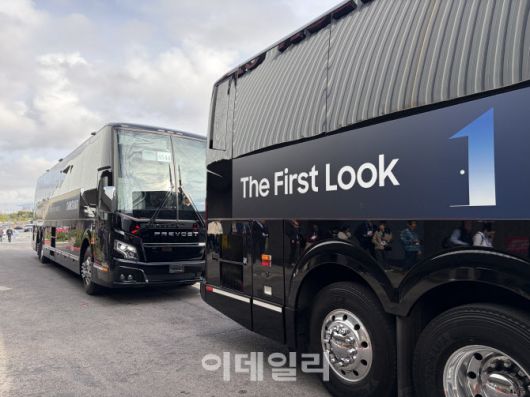 삼성전자가 마련한 LVCC에서 윈으로 이동하는 셔틀버스. 삼성전자의 윈 호텔에 마련된 전시관으로 가고자 하는 관람객은 이 버스를 이용할 수 있다. (사진=김소연 기자) |