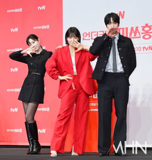 (MHN 이지숙 기자) 배우 하윤경, 박신혜, 조한결이 12일 오후 서울 구로구 더링크서울 호텔에서 열린 tvN 새 토일극 '언더커버 미쓰홍' 제작발표회에 참석해 포즈를 취하고 있다.
