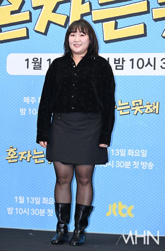 (MHN 이현지 기자) 방송인 이수지가 12일 오후 서울 마포구 스탠포드 호텔에서 진행된 예능 '혼자는 못 해' 제작발표회에 참석해 포토타임을 갖고 있다.