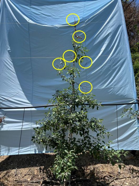 15m 이상 떨어진 후지 7년생 사과나무는 정상주 생산량의 70% 수준으로 회복됐다.
