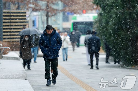 (서울=뉴스1) 안은나 기자 = 12일 오후 서울 중구 을지로에서 시민들이 눈을 맞으며 걸어가고 있다. 2026.1.12/뉴스1coinlocker@news1.krCopyright ⓒ 뉴스1. All rights reserved. 무단 전재 및 재배포, AI학습 이용 금지.