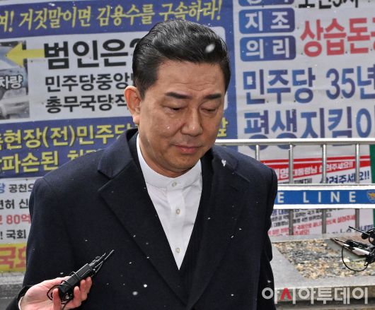 아시아투데이 송의주 기자 = 김병기 더불어민주당 전 원내대표가 12일 서울 여의도 당사에서 열린 윤리심판원 회의에 출석하고 있다. 이날 윤리심판원은 김 전 원내대표의 '공천 헌금' 수수·묵인 의혹과 관련해 제명 등 징계를 논의한다.