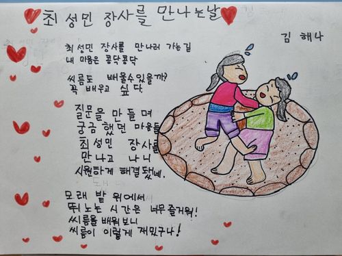 태안 대기초등생들이 최성민 장사에게 보낸 시와 그림 |