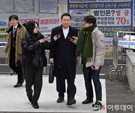 아시아투데이 송의주 기자 = 김병기 더불어민주당 전 원내대표가 12일 서울 여의도 당사에서 열린 윤리심판원 회의에 출석하고 있다. 이날 윤리심판원은 김 전 원내대표의 '공천 헌금' 수수·묵인 의혹과 관련해 제명 등 징계를 논의한다.