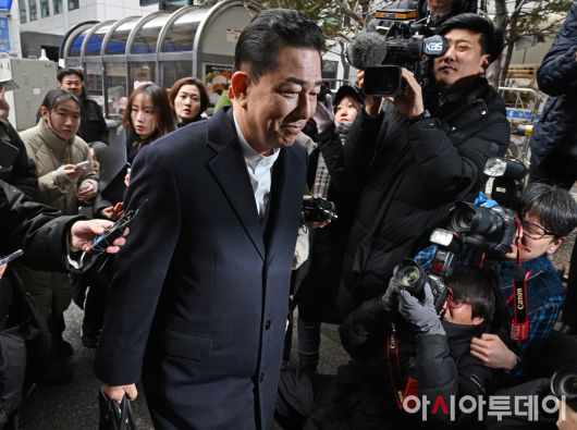 아시아투데이 송의주 기자 = 김병기 더불어민주당 전 원내대표가 12일 서울 여의도 당사에서 열린 윤리심판원 회의에 출석하고 있다. 이날 윤리심판원은 김 전 원내대표의 '공천 헌금' 수수·묵인 의혹과 관련해 제명 등 징계를 논의한다.