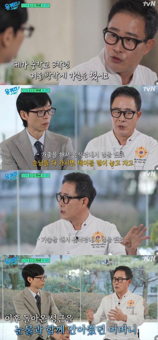반면 임성근 셰프는 어린 시절 방황했던 시간을 고백하기도. 그는 "제가 중학교 3학년 겨울방학에 가출을 했다. 음식점에서 일을 했다"며 "손님들 다 가시면 테이블 밀어 놓고 거기서 자곤 했다"고 당시를 회상했다.