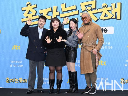 (MHN 이현지 기자) 배우 전현무, 이수지, 이세희, 추성훈이 12일 오후 서울 마포구 스탠포드 호텔에서 진행된 예능 '혼자는 못 해' 제작발표회에 참석해 포토타임을 갖고 있다.