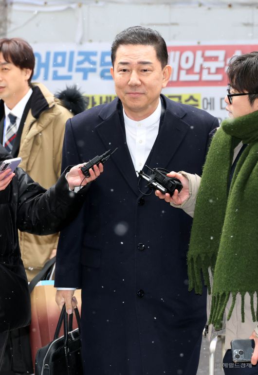 [헤럴드경제=이상섭 기자] 공천헌금 수수 등 각종 비위 의혹을 받는 김병기 더불어민주당 의원이 12일 오후 서울 여의도 중앙당사에서 열린 윤리위원회에 출석하고 있다.