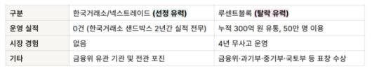하지만 루센트블록 측은 제도화 과정에서 실질적인 성과와 운영 경험이 없는 금융당국 연관 기업들이 자리를 채우며 스타트업이 퇴출될 위기에 놓였다고 주장했다. 실제로 금융위원회 산하 증권선물위원회는 '조각투자 장외거래소 금융투자업 예비인가 신청' 안건 심의를 통해 한국거래소 컨소시엄과 넥스트레이드 컨소시엄 등 2개사를 사실상 선정한 상태다. 금융위는 오는 14일 의결을 통해 예비인가를 확정할 방침이다.