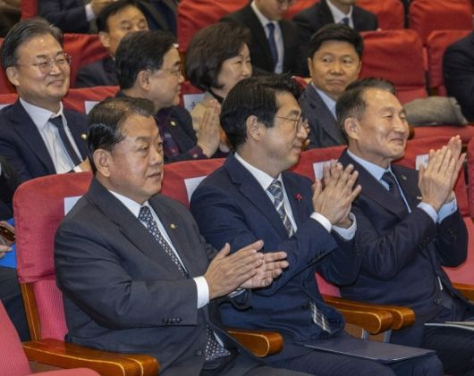 김병주 더불어민주당 의원(앞줄 왼쪽 첫 번째)이 12일 국회 의원회관에서 열린 한국·캐나다 방산 협력 확대를 위한 범정부 협업 방안 토론회에서 박수치고 있다. [연합] |