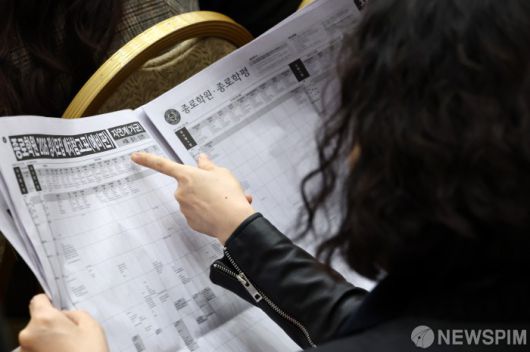 [서울=뉴스핌] 최지환 기자 = 14일 오후 서울 광진구에서 열린 종로학원 2026학년도 정시 합격점수 예측 및 전략 설명회에서 학부모 및 수험생들이 배치표를 살펴보고 있다. 2025.11.14 choipix16@newspim.com |