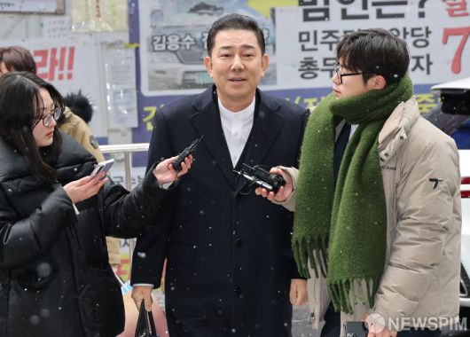 [서울=뉴스핌] 정일구 기자 = 김병기 전 더불어민주당 원내대표가 12일 오후 서울 여의도 중앙당사에서 열린 더불어민주당 윤리심판원에 출석하고 있다. 2026.01.12 mironj19@newspim.com