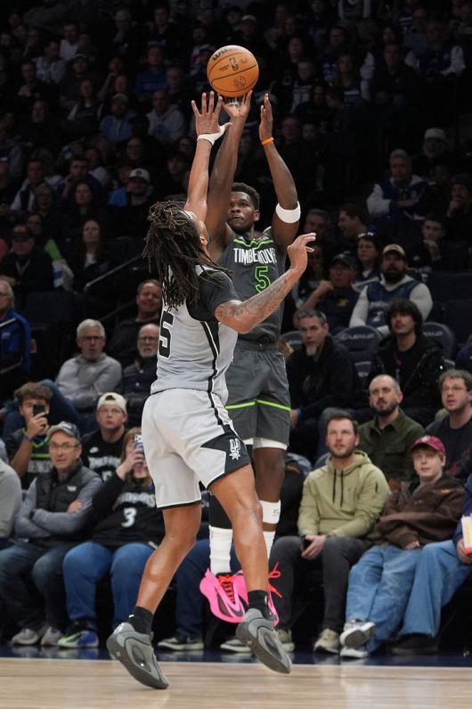 미네소타는 12일(한국 시간) 미국 미네소타주 미니애폴리스의 타깃 센터에서 열린 샌안토니오와의 2025~2026시즌 NBA 정규리그 홈 경기에서 104-103으로 이겼다.
