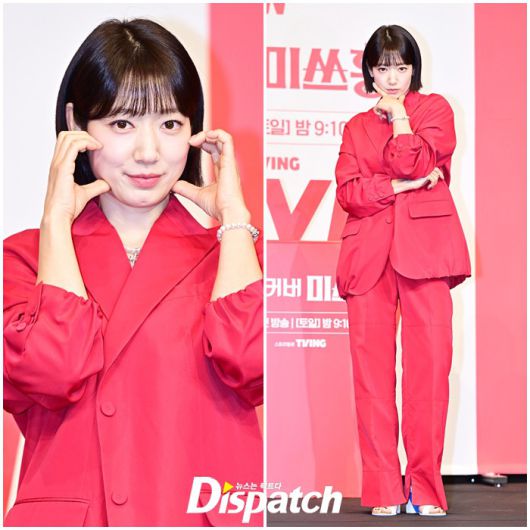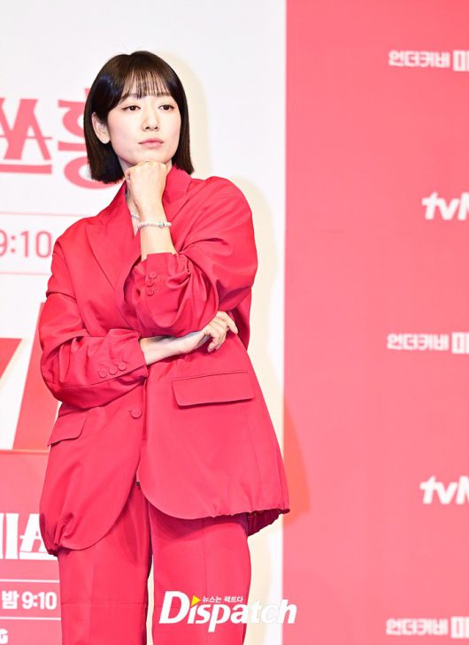 이날 기자간담회에 참석한 박신혜는 강렬한 레드 수트로 남다른 패션감각을 뽐냈다. 러블리한 단발헤어로 동안 미모도 뽐냈다.
