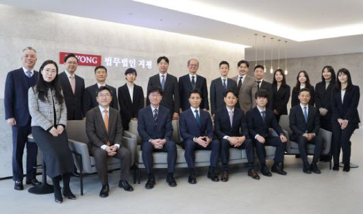 법무법인 지평 안전경영컨설팅센터를 이끌게 된 유충현(앞줄 왼쪽 다섯번째) 고문과 전문가들이 기념촬영을 하고 있다.(사진=지평) |