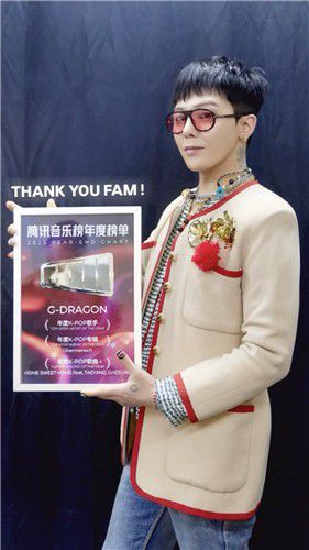 지드래곤은 중국 텐센트 뮤직 엔터테인먼트가 발표한 연간 차트에서도 '올해의 K팝 가수' 등을 수상했다. 앨범 '위버멘쉬'는 '올해의 K팝 앨범', 수록곡 '홈 스위트 홈'(HOME SWEET HOME)이 '올해의 K팝 노래'를 받았다.
