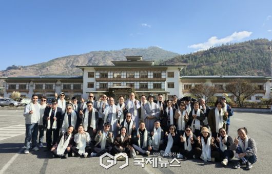 (부탄=국제뉴스) 유지현 기자 = 8일 부탄 파로국제공항에 도착한 제2회 부탄 국제 ESG 동맹포럼(The 2nd Bhutan International ESG Alliance Forum) 한국 대표단.