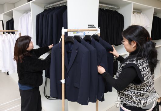 (군포=뉴스1) 김영운 기자 = 2026년 군포청년날개 면접정장 무료대여사업이 시작된 12일 경기 군포시 청년공간플라잉 청플옷장에서 관계자들이 면접정장을 준비하고 있다. 신청 자격은 18세 이상 39세 이하 군포시 거주 구직 청년으로 대여기간은 1회 3박 4일이며 대여 횟수는 연 5회까지 대여가 가능하다. 2026.1.12/뉴스1