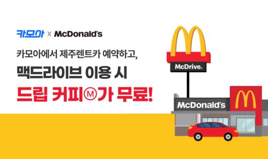 이번 협약에 따라 카모아를 통해 제주도 렌터카를 예약한 고객은 제주 내 9개 맥도날드 드라이브 스루(맥드라이브) 매장 이용 시 드립커피 1잔을 무료로 제공받을 수 있다.