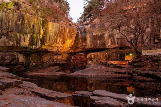 충북 괴산군 연풍면 원풍리에 위치한 수옥폭포는 조령 제3관문에서 흘러내린 계류가 절벽 아래로 떨어지며 3단을 이루는 폭포이다. 상류의 깊은 소와 함께 웅장한 자연 경관을 선사한다. 고려 말 공민왕의 이야기가 전해오며, 1711년 연풍현감 조유수가 지었다는 수옥정의 흔적이 남아 있다. 폭포와 정자가 어우러진 모습은 영화나 역사 드라마의 배경으로도 자주 등장한다.