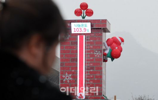 [이데일리 방인권 기자] 12일 서울 광화문광장에 설치된 사랑의 온토탑이 100도를 넘겨 103.9도를 기록하고 있다. 사랑의 온도 100도를 넘긴 것은 지난해보다 이틀 빠른 속도로 사랑의 온도탑은 목표액의 1%가 모금될 때마다 1도씩 올라간다. 사랑의열매 사회복지공동모금회의 '희망2026나눔캠페인' 목표 모금액은 4500억원이다.