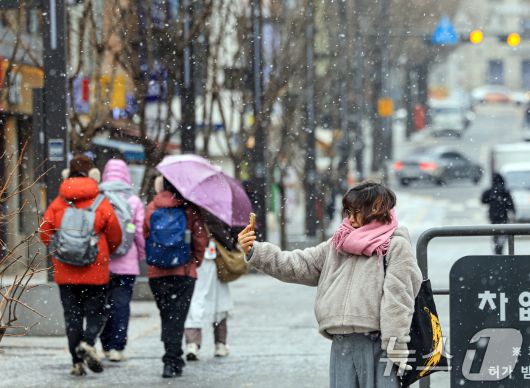 (서울=뉴스1) 이호윤 기자 = 눈이 내리는 12일 서울 광화문광장에서 외국인 관광객들이 사진을 찍고 있다. 2026.1.12/뉴스1256@news1.krCopyright ⓒ 뉴스1. All rights reserved. 무단 전재 및 재배포, AI학습 이용 금지.