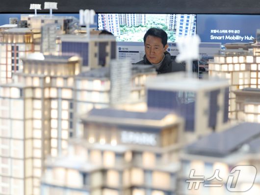 (서울=뉴스1) 황기선 기자 = 오세훈 서울시장이 12일 오후 서울 노원구 광운대역 물류부지 현장을 방문, 모델하우스를 살펴보고 있다. 향후 이곳에는 아파트 3032가구를 비롯해 공공기숙사와 생활 SOC(사회간접자본) 등이 들어설 예정이다. 준공 목표 시점은 2028년이다. 2026.1.12/뉴스1