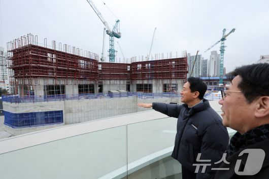 (서울=뉴스1) 황기선 기자 = 오세훈 서울시장이 12일 오후 서울 노원구 광운대역 물류부지 현장을 방문, 공사현장을 살펴보고 있다. 향후 이곳에는 아파트 3032가구를 비롯해 공공기숙사와 생활 SOC(사회간접자본) 등이 들어설 예정이다. 준공 목표 시점은 2028년이다. 2026.1.12/뉴스1
