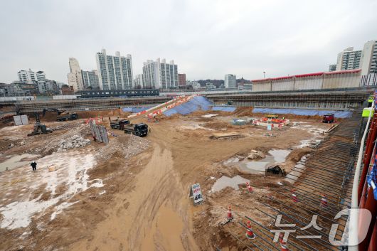 (서울=뉴스1) 황기선 기자 = 12일 오후 서울 노원구 광운대역 물류부지 공사현장에 공사가 진행되고 있다. 향후 이곳에는 아파트 3032가구를 비롯해 공공기숙사와 생활 SOC(사회간접자본) 등이 들어설 예정이다. 준공 목표 시점은 2028년이다. 2026.1.12/뉴스1