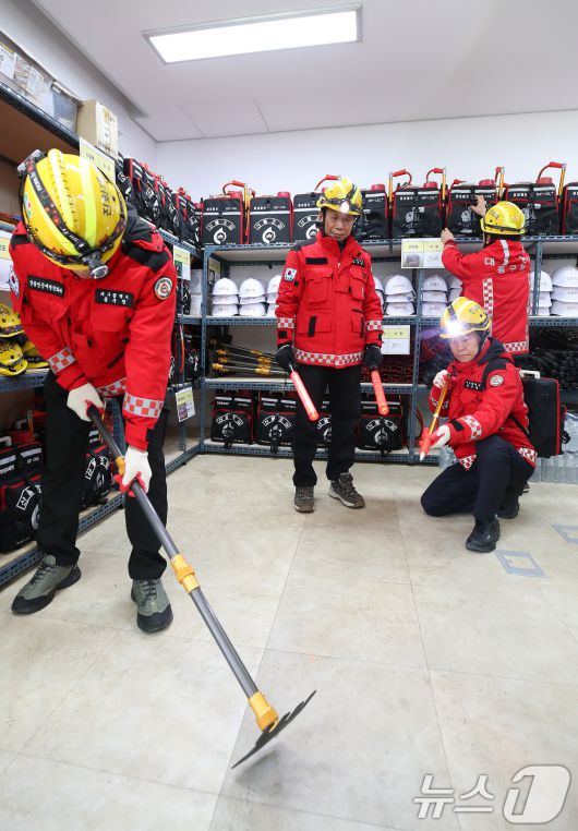 (대구=뉴스1) 공정식 기자 = 겨울철 건조한 날씨가 이어진 12일 대구 동구 지묘동 서원연경공원 산불대응센터에서 산불전문진화대원들이 산불진화장비를 점검하고 있다. 산불예방체계 구축과 초동대응태세 확립을 위해 대구에서 처음 문을 연 이곳 산불대응센터에는 주간 16명의 산불전문진화대원이 근무하며, 산불 예방과 진화 활동에 나선다. 2026.1.12/뉴스1