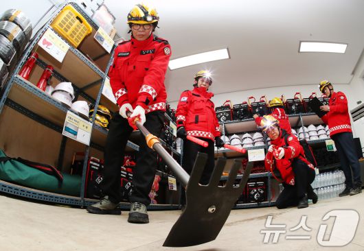 (대구=뉴스1) 공정식 기자 = 겨울철 건조한 날씨가 이어진 12일 대구 동구 지묘동 서원연경공원 산불대응센터에서 산불전문진화대원들이 산불진화장비를 점검하고 있다. 산불예방체계 구축과 초동대응태세 확립을 위해 대구에서 처음 문을 연 이곳 산불대응센터에는 주간 16명의 산불전문진화대원이 근무하며, 산불 예방과 진화 활동에 나선다. 2026.1.12/뉴스1