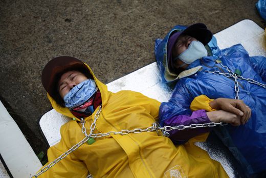 ▲송전탑 건설을 반대하는 밀양 주민들의 필사적 저항. ⓒ프레시안(자료사진) |
