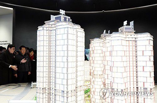 (서울=연합뉴스) 이지은 기자 = 오세훈 서울시장이 12일 서울 노원구 월계동 광운대역 물류부지 공사현장을 방문, 모델하우스를 살펴보며 관계자의 설명을 듣고 있다. 2026.1.12