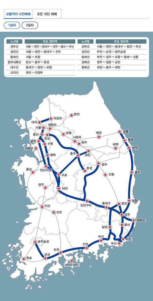 한편 코레일은 오는 15일부터 닷새간 설 명절 승차권 예매를 시작한다. 15일부터 이틀간은 교통약자 사전 예매를 실시하며 19일부터 사흘간은 모든 국민을 대상으로 일반 예매를 진행한다.