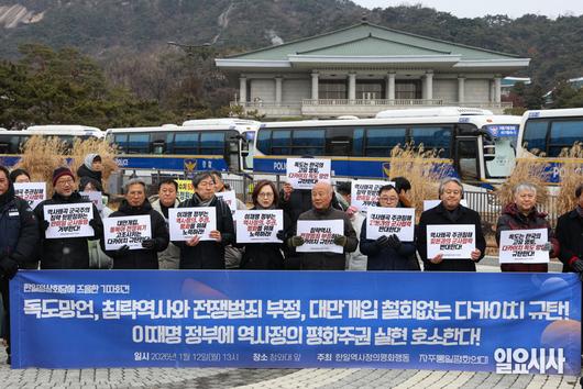 이날 기자회견에서 이들은 “오는 13일부터 14일까지 일본에서 한일 정상회담이 개최된다. 그러나 회담을 앞두고 다카이치 일본 총리는 침략 행위를 ‘자위권 행사’라고 하는 등 망언을 이어가고 있다”며 “이재명 정부는 일본의 부당한 역사 왜곡 등에 맞서 당당한 입장을 밝히길 호소한다”고 밝혔다.