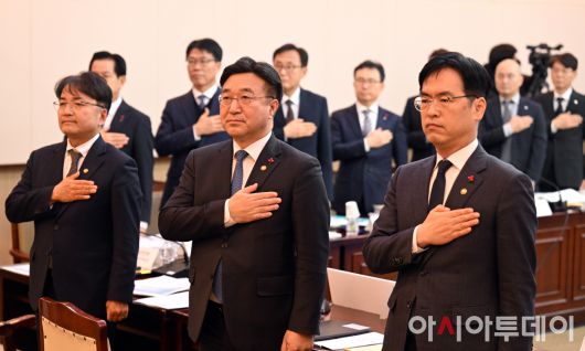 [포토]업무보고전 국민의례하는 행안부 장 차관들