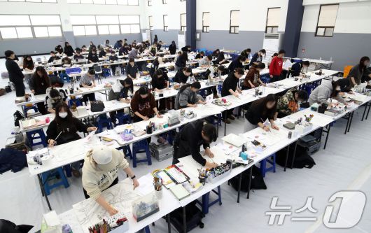 (부산=뉴스1) 윤일지 기자 = 12일 오후 부산 사하구 동아대학교 승학캠퍼스에서 열린 2026학년도 정시모집 미술실기시험에서 수험생들이 그동안 갈고닦은 실력을 발휘하고 있다. 2026.1.12/뉴스1