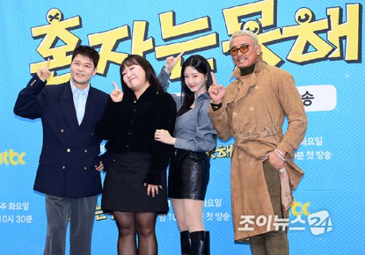 [조이뉴스24 정소희 기자] (왼쪽부터)전현무-이수지-이세희-추성훈이 12일 오후 서울 마포구 스탠포드호텔에서 열린 JTBC 새 예능 프로그램 '혼자는 못 해' 제작발표회에 참석하고 있다.