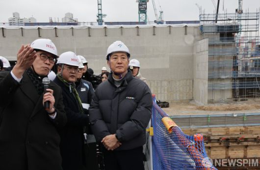 [서울=뉴스핌] 양윤모 기자 = 오세훈 서울시장이 12일 오후 노원구 월계동 광운대역 물류부지 공사현장을 찾아 HDC현대산업개발이 시공중인 'SEOUL ONE' 현장을 시찰을 하고 있다. 40여년 간 물류시설, 시멘트 저장고가 있던 광운대역 일대 15만 6,581㎡에 상업·주거·업무시설, 생활SOC 등을 조성하는 ‘광운대역 물류부지 개발 사업’은 복합용지 주택 건설을 시작으로 오는 '28년 준공을 목표로 추진된다. 2026.01.12 yym58@newspim.com |