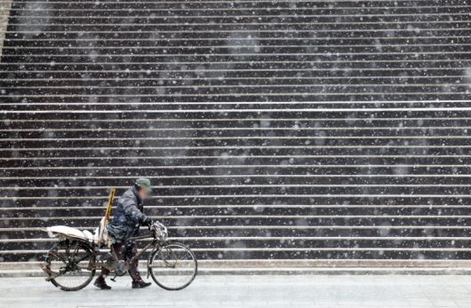 전국에 매서운 한파가 몰아친 12일 오후 수도권에 눈이 내리고 있다.