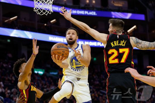 NBA 골든스테이트 커리(가운데)가 12일(한국시간) 애틀랜타와 경기에서 레이업을 시도하고 있다.ⓒ AFP=뉴스1 |