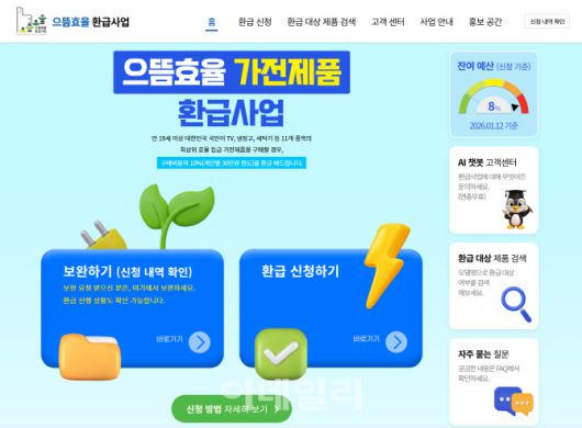 [이데일리 정두리 기자] 한국에너지공단은 ‘2025년 으뜸효율 가전제품 환급사업’ 신청을 오는 16일 오후 6시까지 접수한다고 12일 밝혔다.