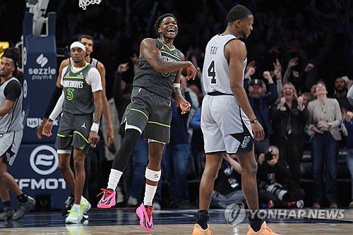 (서울=연합뉴스) 최송아 기자 = 미국프로농구(NBA) 미네소타 팀버울브스가 '에이스' 앤서니 에드워즈의 결승 득점에 힘입어 샌안토니오에 짜릿한 1점 차 역전승을 거뒀다.