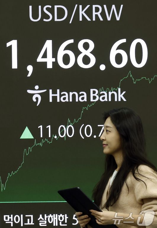 (서울=뉴스1) 박정호 기자 = 12일 오후 서울 중구 하나은행 본점 딜링룸 전광판에 증시 종가가 표시되고 있다. 이날 코스피는 전 거래일 대비 38.46포인트(0.84%) 오른 4624.78, 코스닥은 1.90포인트(0.20%) 오른 949.82으로 장을 마쳤다. 오후 3시 30분 서울외환시장에서 달러·원 환율은 전일 오후 3시 30분 주간종가 대비 10.8원 오른 1468.4원을 기록했다. 2026.1.12/뉴스1
